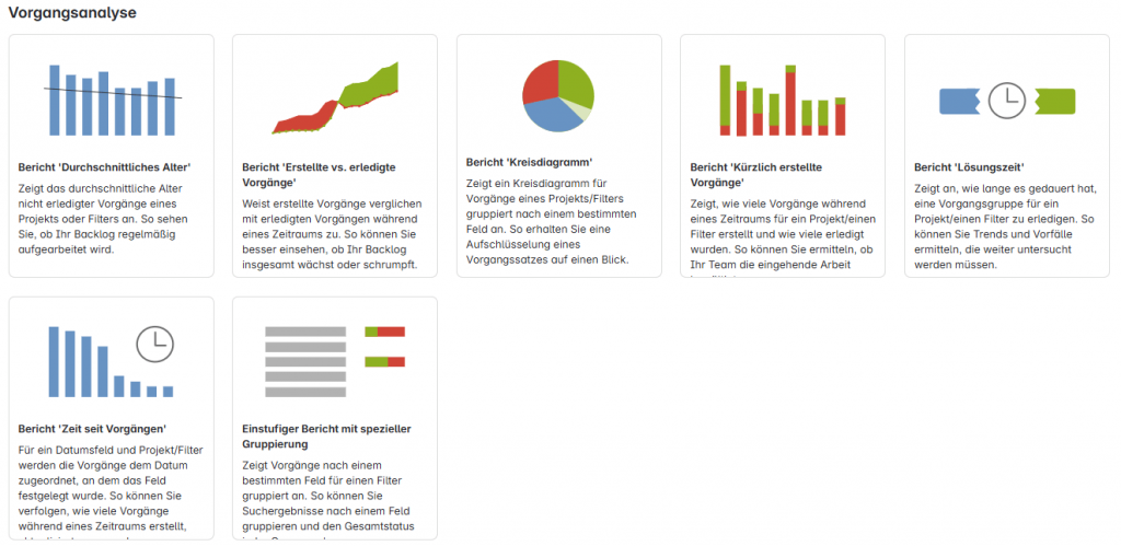 Ein erstes Indiz für den Aufräumbedarf eines Backlogs, liefern in Jira die Berichte „Durchschnittliches Alter“, „Erstellte vs. Erledigte Vorgänge“ und „Kürzlich erstellte Vorgänge“.